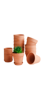 HERDUK 4 inch Terracotta Pots with Drainage Holes and Saucers