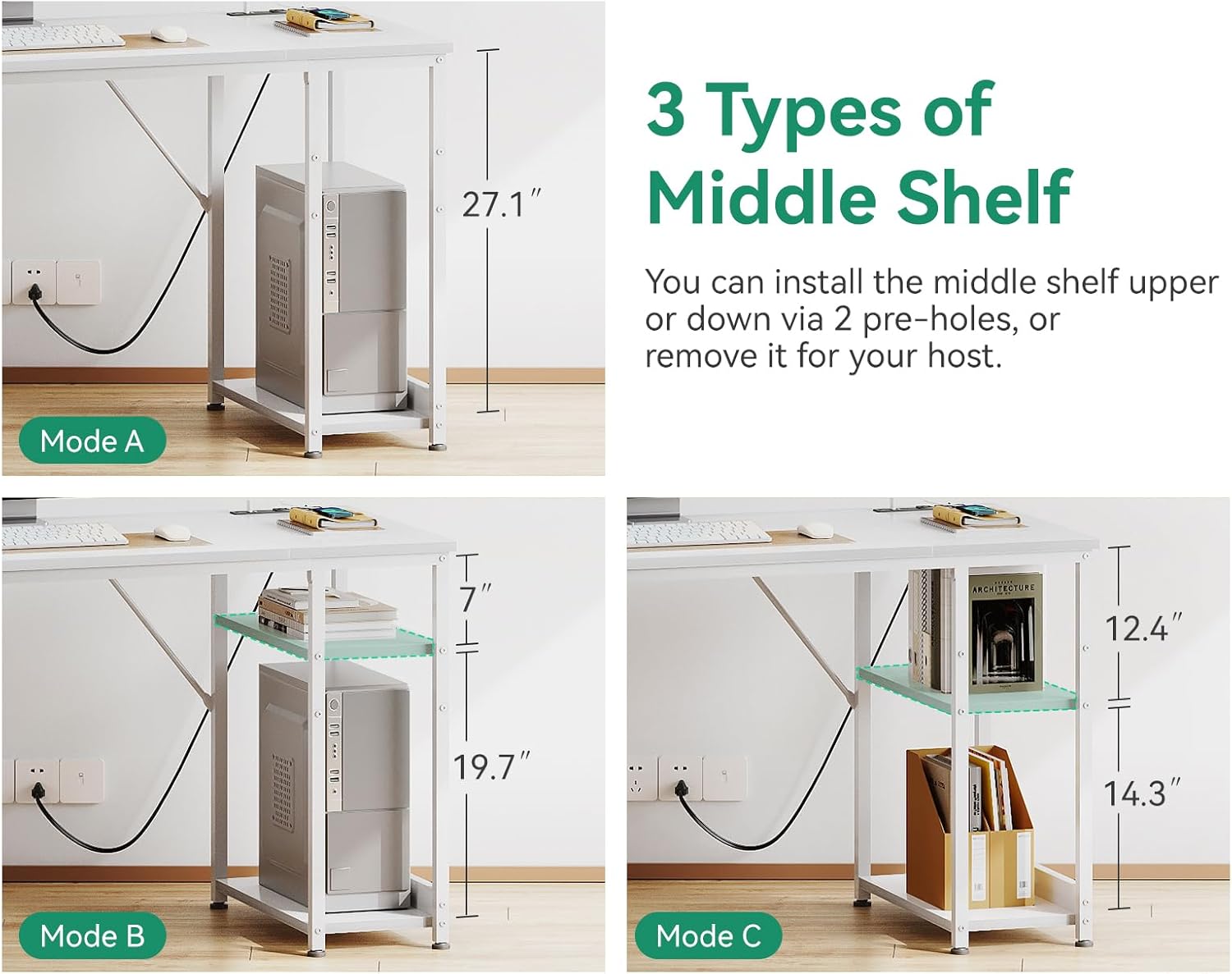 AODK 51 Inch Computer Desk with File Drawers & USB Power Outlets - Reversible Home Office Desk with Storage Shelves, Work from Home, Modern Work/Writing/Study Table for Bedroom, White