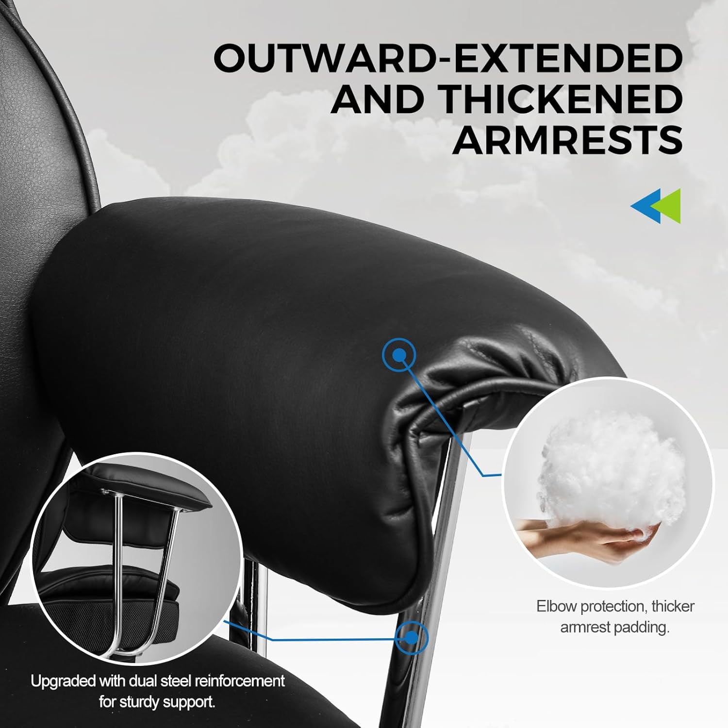 GTRACING Gaming Chair,Office Chair with Pocket Spring Lumbar Support, Ergonomic Comfortable Wide Office Desk Computer Chair with Outward Fixed Soft Armrests and Footrest (PU Leather, Black)