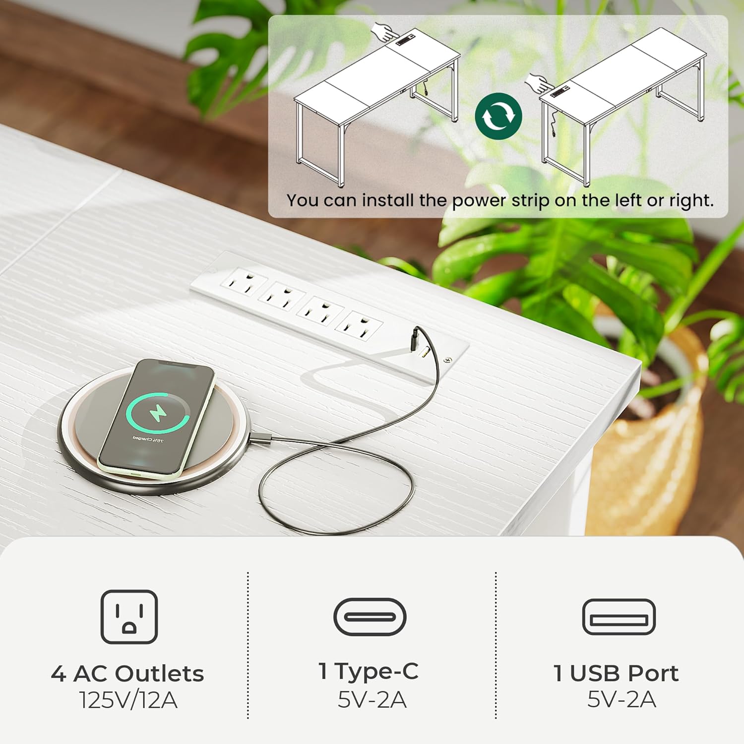 Huuger 63 x 24 inch Desk with Power Outlets & USB-C, Deeper & Thicker Desktop, Robust Metal Tubes, Computer Desk, Heavy Duty Office Desk, Work Gaming Desk, for Home Office, White