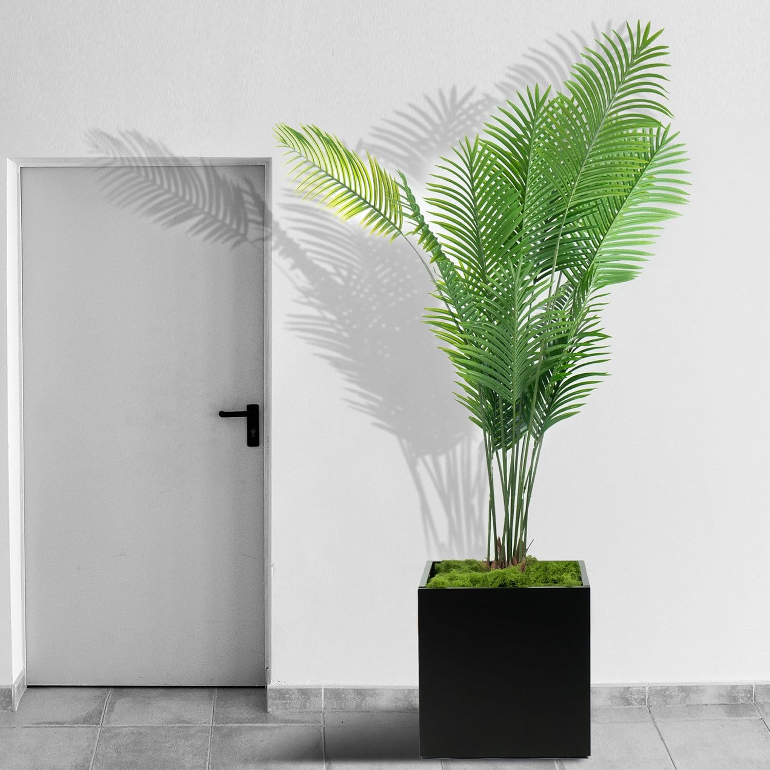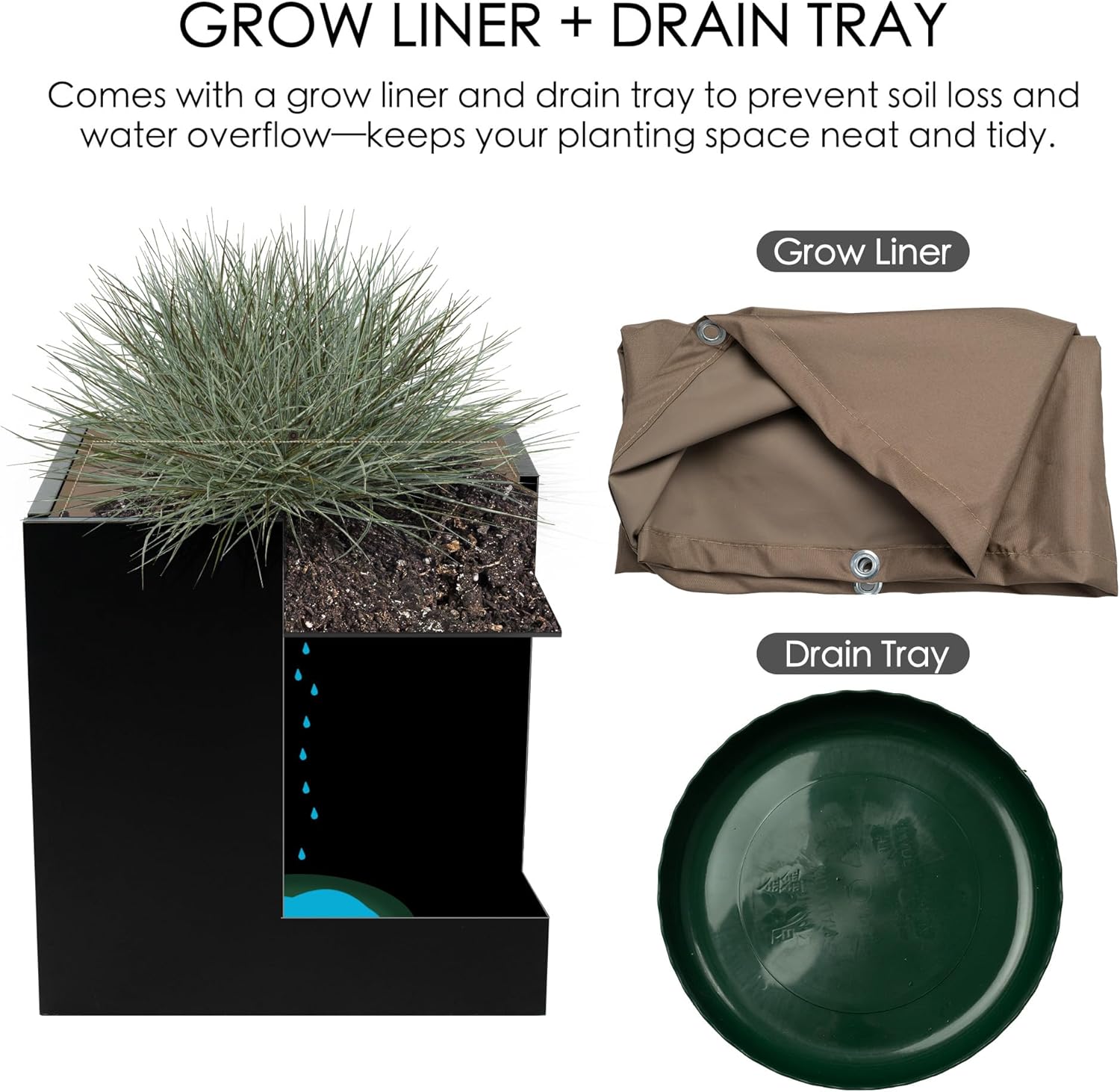 Kozyard 20'' Cube Metal Planter Steel Planter Box Black Steel Flower Pot with Saucer Partition Panel for Trees Plants Flowers Indoor Outdoor Garden Patio Deck Yard