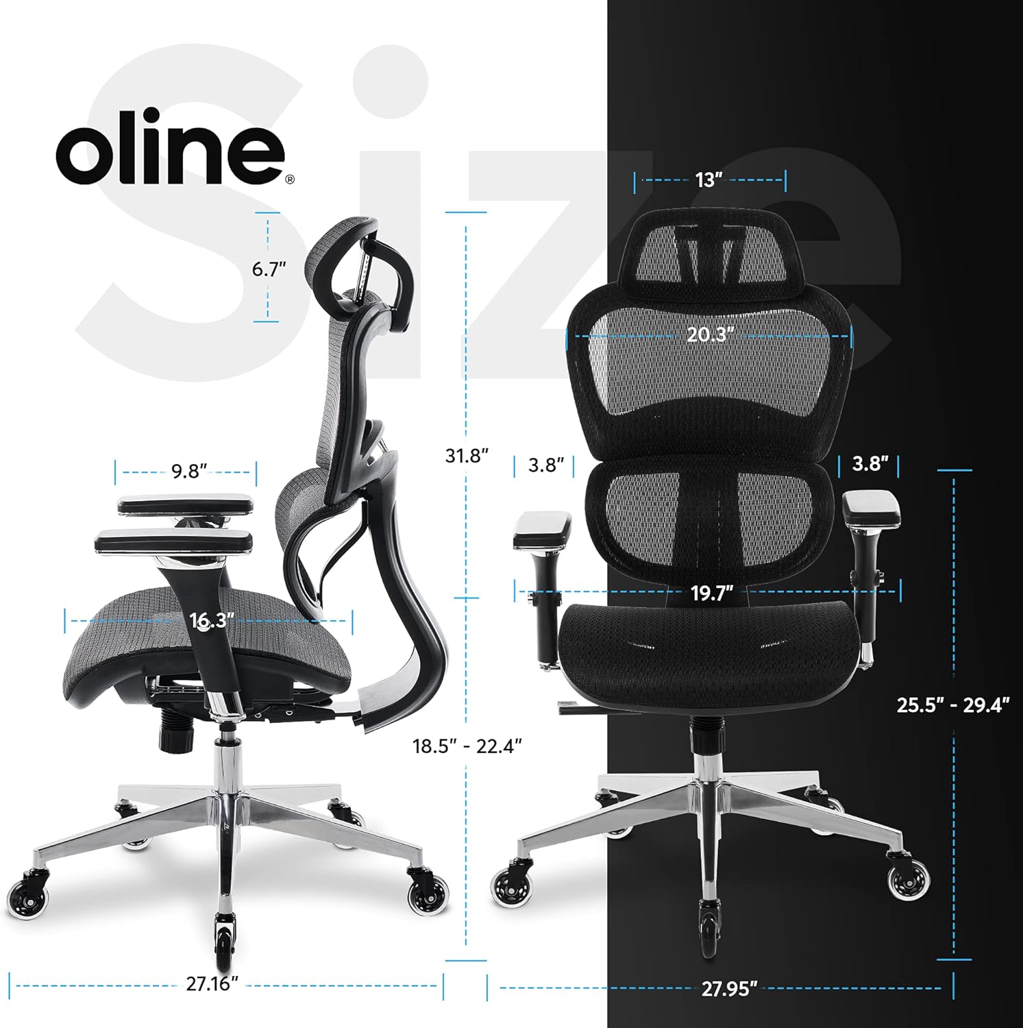 Oline ErgoPro Ergonomic Office Chair, Rolling Desk Chair with 4D Adjustable Armrest, 3D Lumbar Support, Blade Wheels, Mesh Computer Gaming Executive Swivel Chairs Chair (Black)