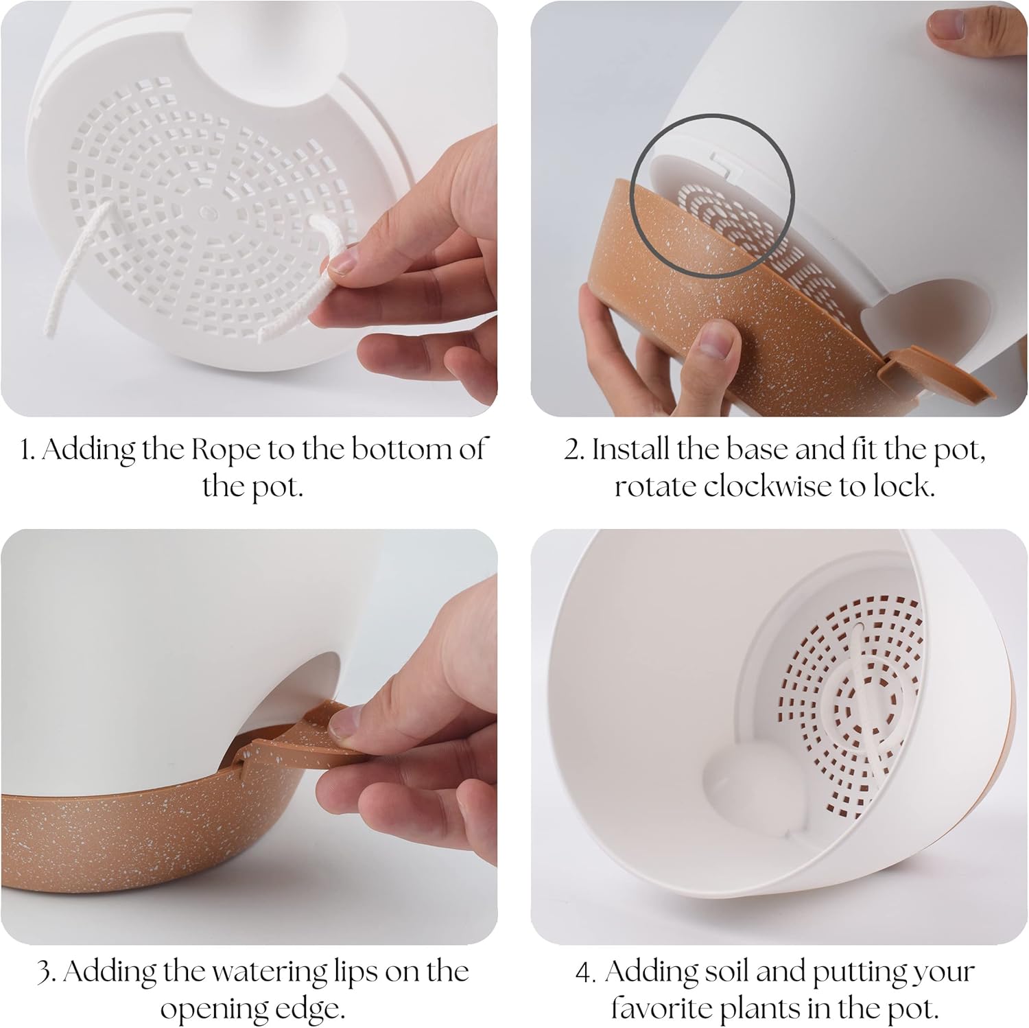 Plant Pots 12/10/9 inch Set of 3, Self Watering Flower Pots Indoor Outdoor, Planters with Drainage Hole Saucer Reservoir, White