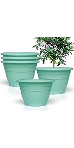 Plant Pots Set of 5, 10 Inch Round Flower Pots, Thickened Plant Planters with...