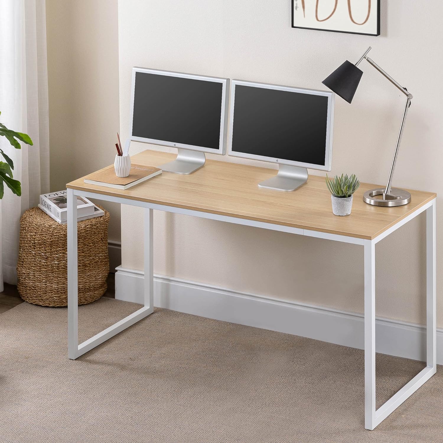 ZINUS Jennifer 55 Inch White Frame Desk, Computer Workstation, Office Desk, Dining Table, Easy Assembly, Natural